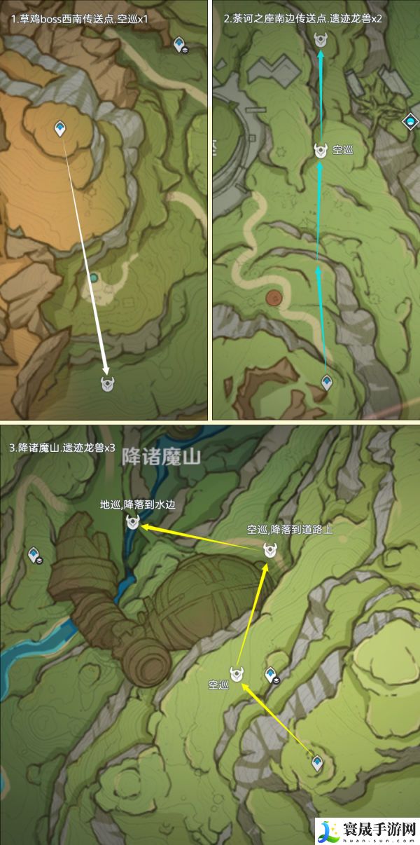 遗迹龙兽目前仅分布在须弥和枫丹区域,总共有49只,建议选黄色路线加上若干蓝色路线,该怪物数量偏少,实在缺少的话建议联机刷取