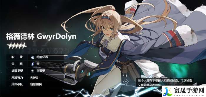 格薇德林,REVO监测部队“锈蚀银腕”成员,现被分配至特罗姆斯雪原监测地域能量波动情况。