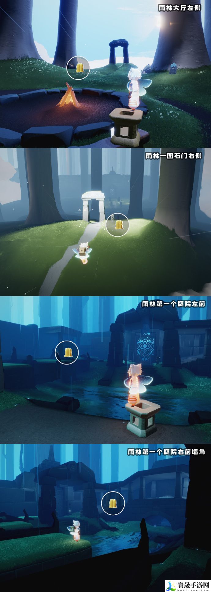【雨林】大厅左侧丨一图石门右侧丨第一个庭院左前方丨第一个庭院右前墙角