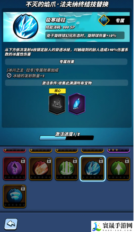 【终结技激活】例:收集并激活对应宝物配方中终结技“极寒棱柱”的对应宝物“预言护符”“魔镜”,即可激活“极寒棱柱”。