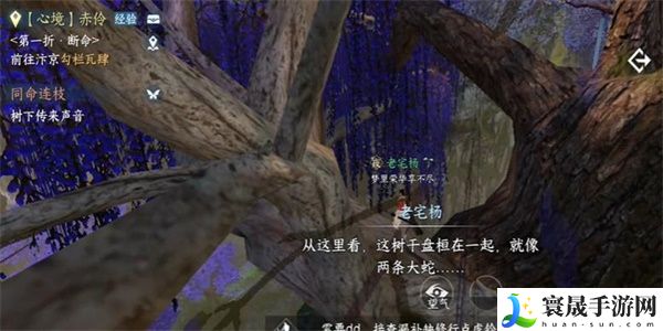 2、接着我们根据指引前往到双生树下,在此跳到树上去进行观察。