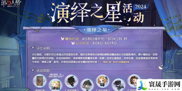 第五人格演绎之星2024怎么玩?最新的演绎之星活动已经开启,参与活动的玩家可以获得很多奖励,想要知道2024演绎之星活动的玩法内容,那么玩家们可以多参考下面的攻略,通过下面的攻略可以快速的了解活动的详情。