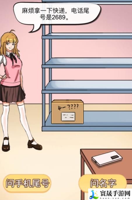 7.点击手机输入2689后,点击打电话给麦仔,将最后一件快递拖给左侧人物。