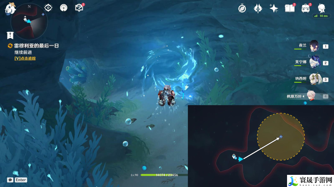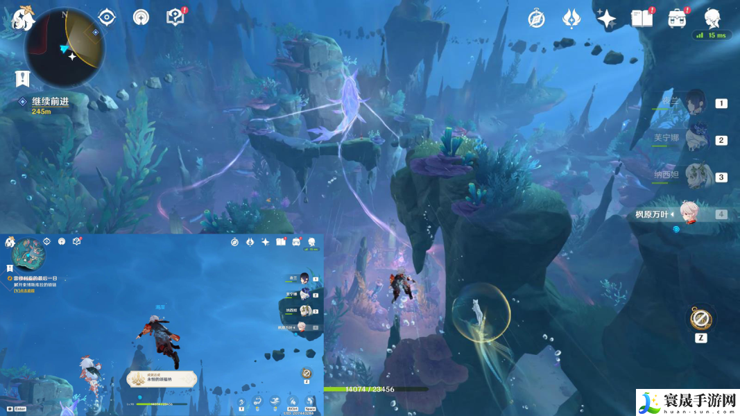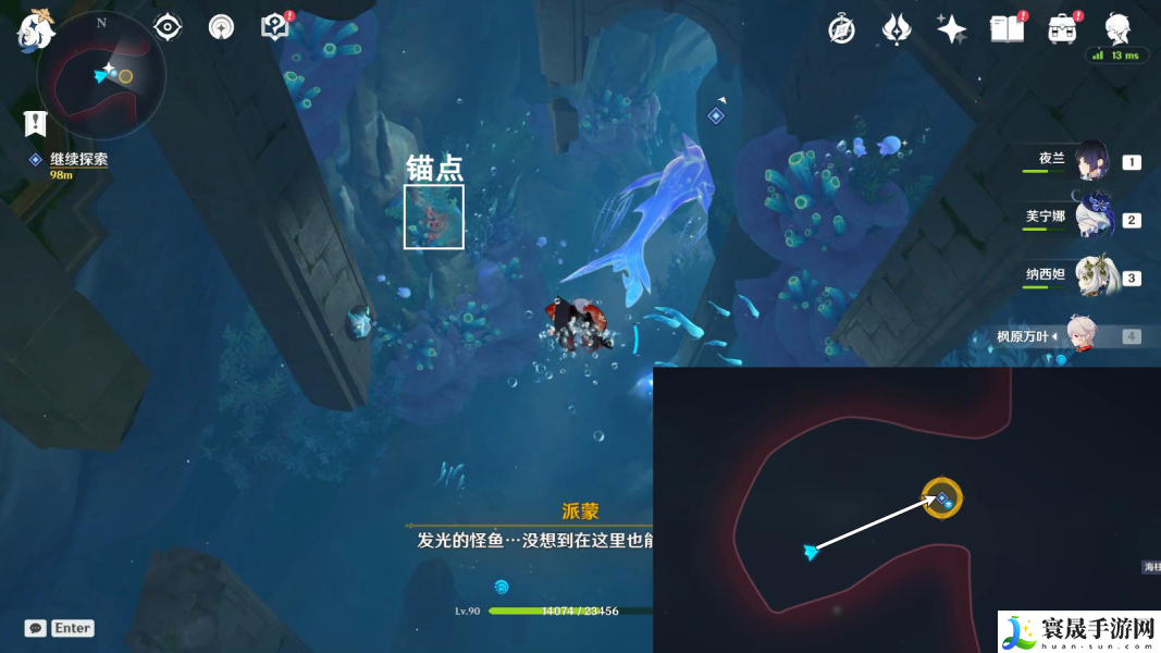 2、往地图的东方向海底游.继续探索,在下图位置可以顺便开启锚点;