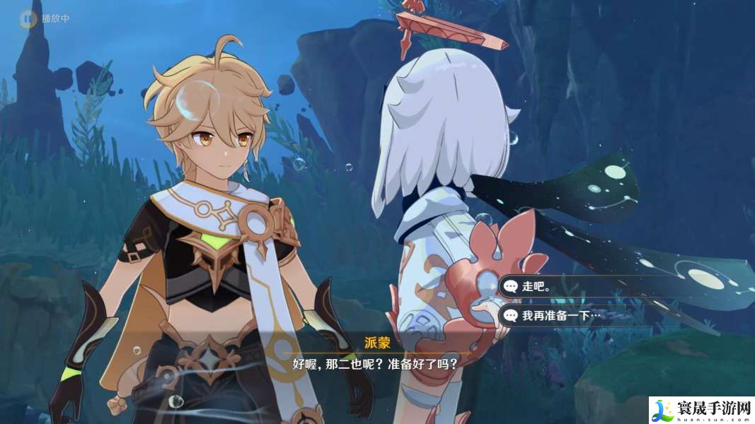 7、在这里和与派蒙对话,在对话中药选择“走吧”;