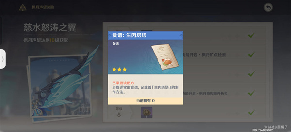 生肉塔塔制作材料:兽肉*3、鸟蛋*3、洋葱*2、茉洁草*2。
