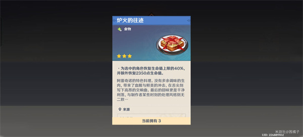 4、最后等待烹饪结束可以获得阿蕾奇诺特色料理“炉火的往迹”。