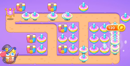 3、剩下的道具分别放置道具清理,然后在线上可以多放置一些陀螺,陀螺可以分裂并且沿路进行攻击。