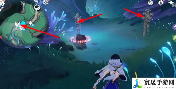 2、第一个,首先来到这个传送点,然后向后走就可以看到这个守卫。