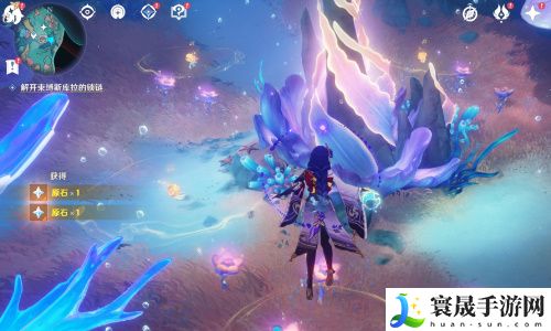 6、我们利用乐章,靠近封印石柱,长按E即可破除第一道封印。