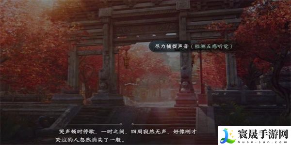 1、首先我们进入到此任务当中,在此欣赏美景,就听到了哭声,我们就选择【大胆向前】即可。