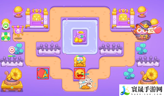 2、优先清理小中道具,清理掉继续放置,太阳花曾家山伤害,右边放置乒乓球清理道具,宝箱给的是负电极。
