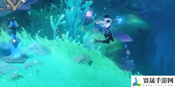 1、玩家首先传送到崇高大道水下锚点,然后转动视角到西南方,往海沟深处游;
