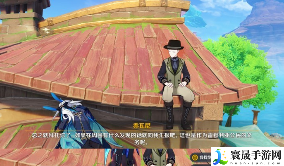 与房梁上的NPC乔瓦尼对话,得知他怀疑镇上有蛮族奸细,需要我们帮忙寻找证据,例如一些树枝。