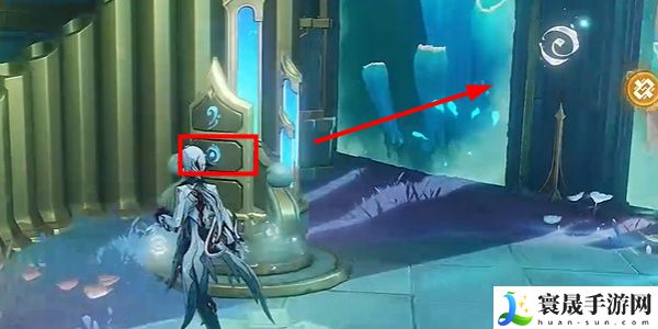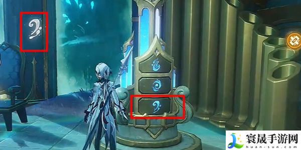2、接着我们就找到附近的下图乐器,根据墙面上的图案提示,就能够启动面板。