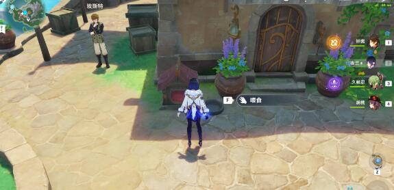 完成上面的任务后,下线再上线,看到小呜斯不见了,与食盆对话,选择【喂食】。