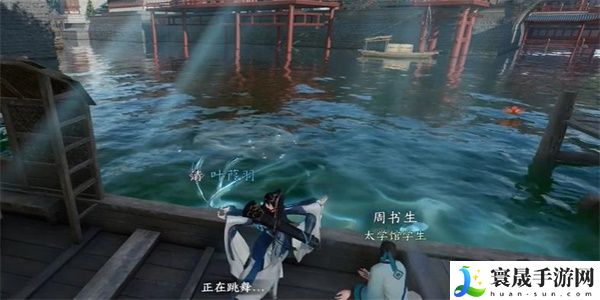 4、然后我们就来到【1123,1056】的位置,在此进行钓鱼,因为钓鱼的速度比较慢,所以直接来跳祈鱼舞。