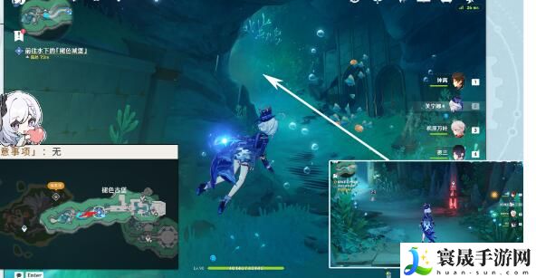 5,然后跳进下方的泉水,潜到水底,顺着漩涡前进