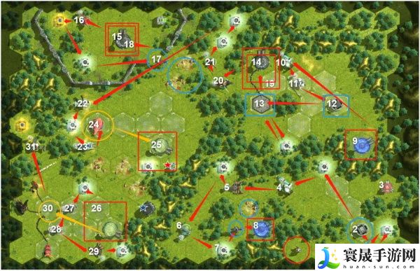 1.第二关难度骤增,有新的机关,但整体还是按照下图编号顺序来就是了。