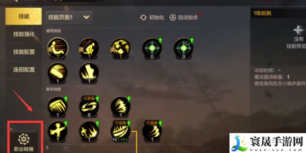 2、接着我们在技能界面,点击左下角的职业转换按钮;