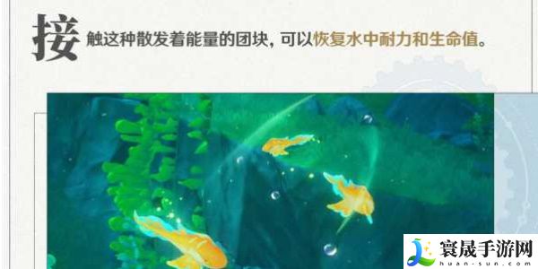 5、复苏水团:在水下有着几条鱼围绕一个水团旋转,这个水团就是复苏水团,旅行者在水下战斗后可以依靠复苏水团回复生命值。