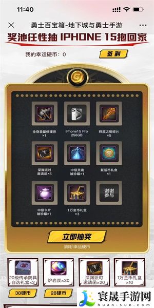 6、在活动当中,获得到幸运币还可以进行抽奖,有机会还能抽取到苹果15,大家快来进行参与吧。