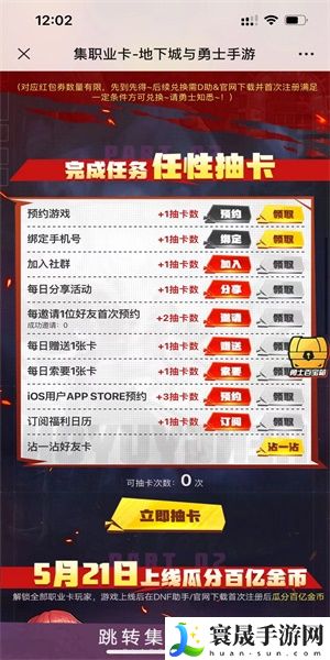 dnf手游预约集卡活动在哪里参加?这款游戏已经定档5月21日正式上线,与此同时还有很多新的活动玩法,预约集卡活动引起了很多玩家的注意,大家都想知道这个活动的玩法内容,想要参与活动的玩家可以多参考乖乖小编带来的攻略,预约集卡活动地址以及玩法小编都会在下面给大家介绍。