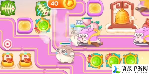 3、将下方障碍物清理后修建瓶子炮,乌龟和鱼骨,乌龟全程自动攻击兔子,瓶子炮和鱼骨继续清理障碍物。