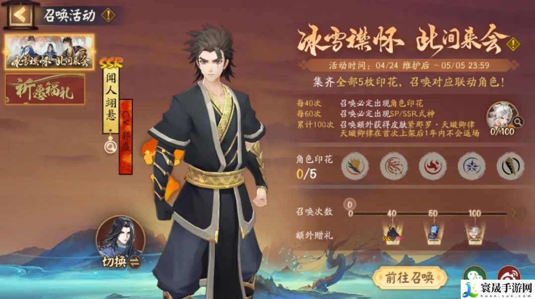 若已集齐对应5枚印花,或成功召唤SSR申屠子夜、SSR闻人翊悬后,重复获得的联动角色印花将转换为10枚对应角色契约书碎片。