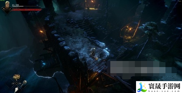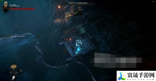 2、然后跳到左侧下方的木制平台上,在这个平台上就可以拾取储藏室钥匙了;