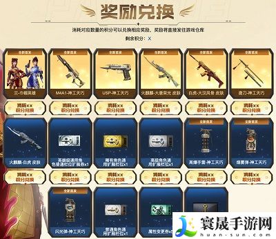 奖池道具:M4A1-神工天巧、USP-神工天巧、神工天巧投掷道具、兰-巾帼英雄、白虎-大汉风骨皮肤、火麒麟-大唐荣光皮肤、各类通用扩展栏位、积分等等