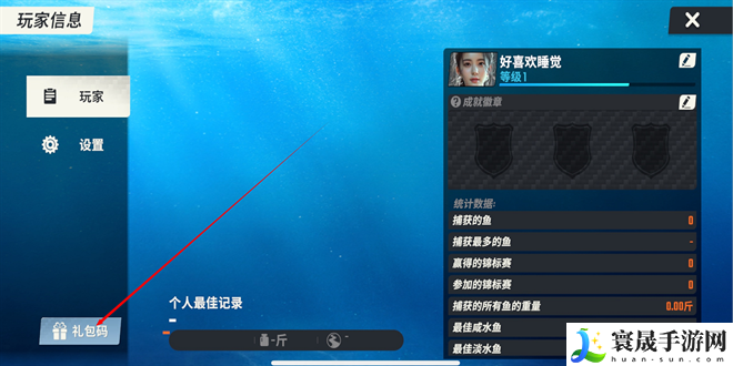 2、随后进入到玩家信息界面,找到左下角的【礼包码】。
