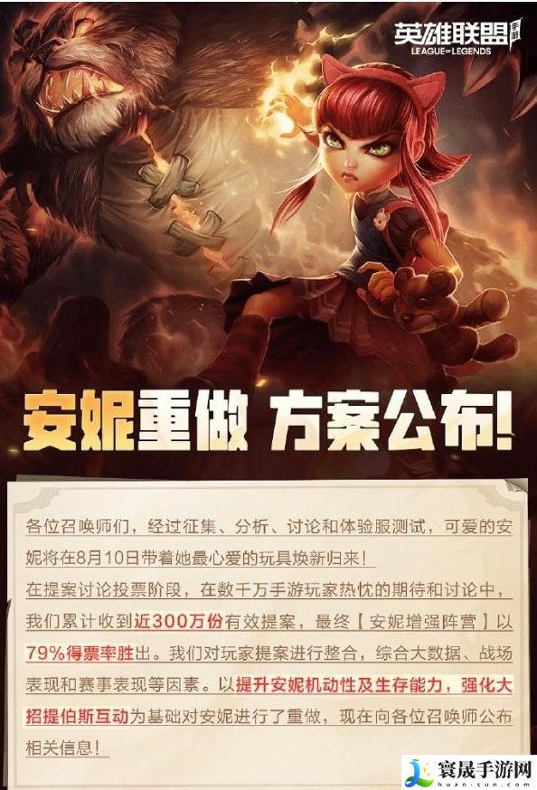 英雄联盟手游安妮重做方案确定下来了,在这次的安妮方向之中,玩家们都可以参与到活动之中,下面橙子小编就给大家详细的介绍一下内容详情,大家一起来看看吧!