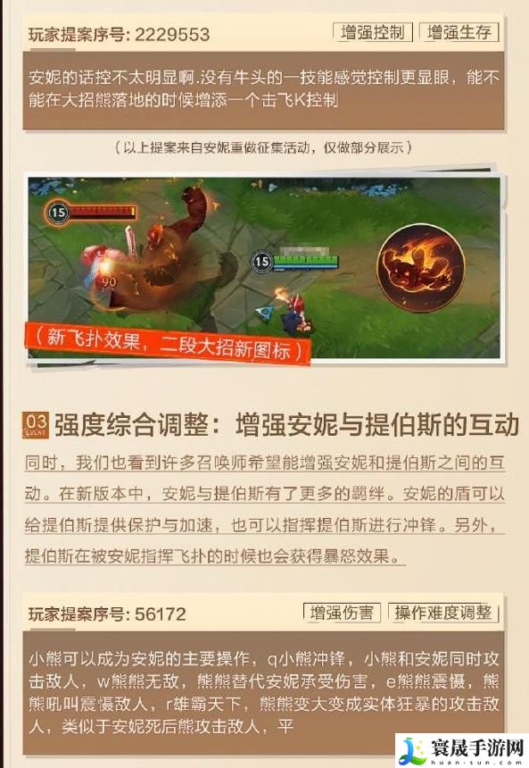 1、通过对安妮的E(3)技能进行调整,增强安妮的机动性和生存能力。