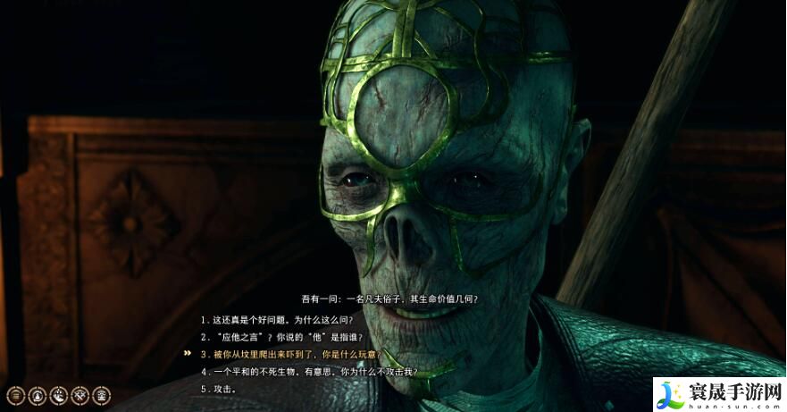 8、消灭完所有的敌人后,我们找到密室内的富丽堂皇的石棺,这有个不死怪物,无论对话还是攻击他都会远去,还表示以后还会见面。