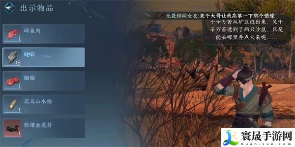 2、接着我们就前往到宋辽边境【430,501】的位置,得知NPC需要火,我们就把打火石出示给NPC即可。