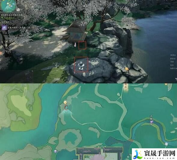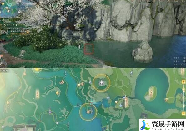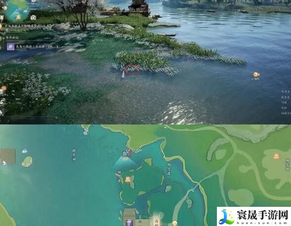 携带上藏宝图16,到相思渡上方,上图中芦苇边上,找不到仔细看一看,芦苇有点多。