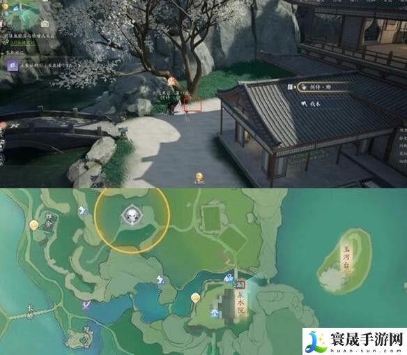 携带上藏宝图15,来到泉水院上方小桥旁的树下,剑飞黑夜17也在这里,挖取即可。