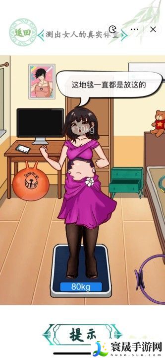 以上就是全部的步骤了,需要去还原女主的真实体重,利用场景当中一切的道具吧。