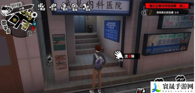 7.最后一个在电影院对面武见诊所,诊所和左边的建筑中间有条缝,缝里有只猫,他会显示“流浪猫”,点击后会提示需要玩家去到四轩茶屋的超市那里买一罐风味猫罐头(免费)。