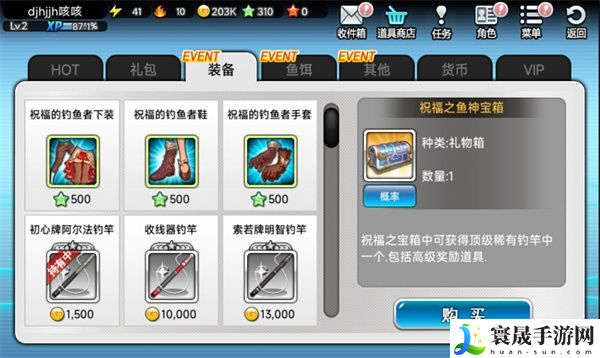兑换奖励:金币x99000、绿钞x199、初学者卡包x1(超巨型鱼)、光轮3000鱼竿(等级1,史诗)