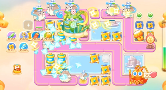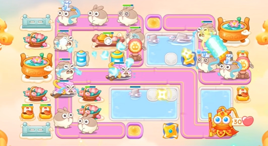 6、最后的阵容大概就是这个样子了,需要注意及时清理道具。多打一点就要适当卡一下炮台留一下兔子。