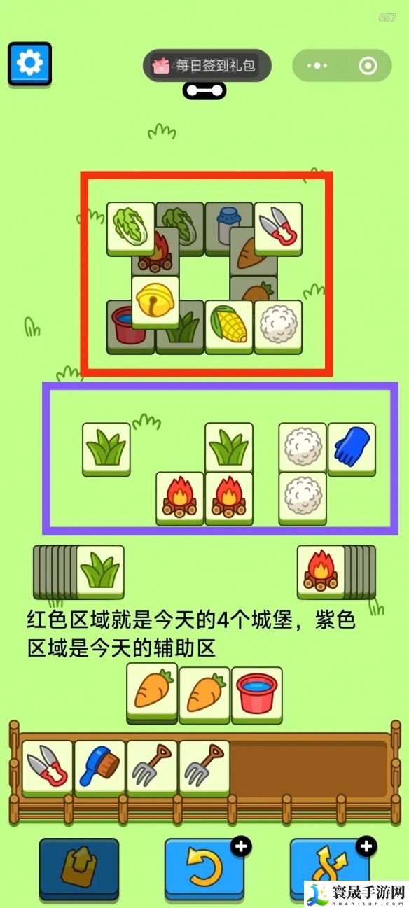 因为4个城堡是一样的,我们可以平消。如果觉得平消很卡或者不习惯平消我们也可以分成左右两个区域,先去推进其中一个区域,使用第1个道具后再推进另一个区域。如果连城堡都进不去,那就退出重新开始。