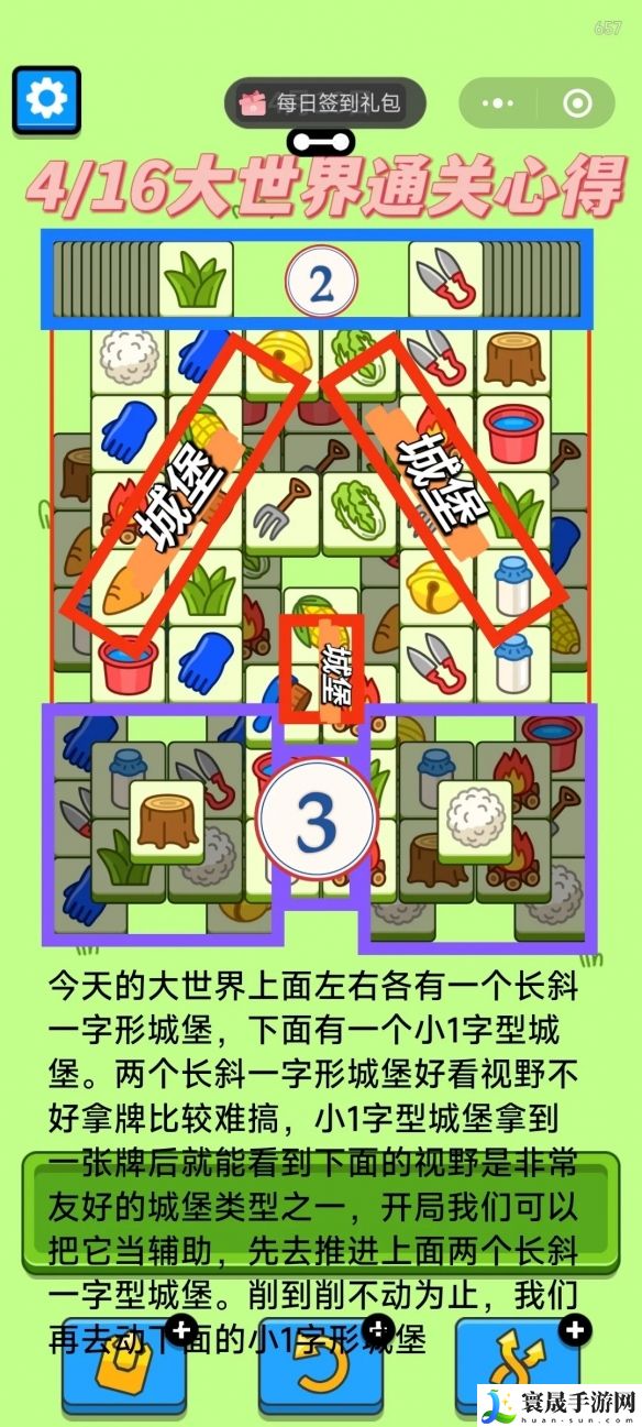小三角形城堡拿掉一张牌后就能看到下面的视野,是非常友好的城保类型之一。