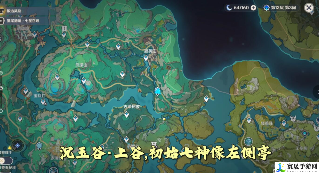 沉玉谷上谷,在初始七神像左侧亭。