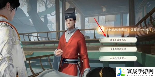 3、在对话当中选择第一句话来接诗句。