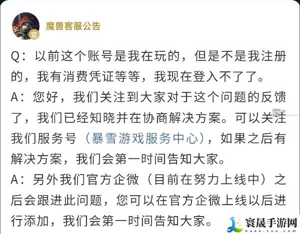 3、针对此事,魔兽世界客服公告发布了最新的信息,表示官方已经注意到了大家对这个问题的反馈,目前已经在协商解决方案。