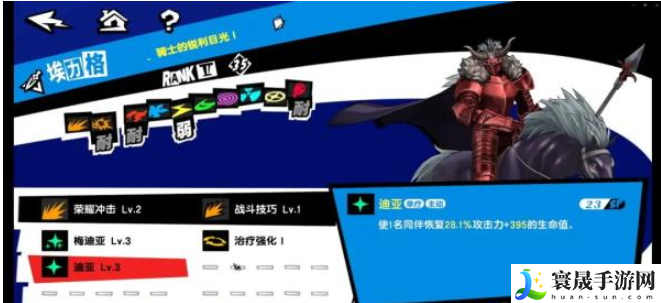 主角挂回血面具,我选了个满强化的埃力格,因为他自带一个187%的物理伤害战斗技巧(这个伤害非常可观),然后把梅迪亚和迪亚这两个技能通过刷育成给他拉进去,有条件就再加个治疗强化,都是回血用的。如果没有埃力格也可以用其他能够继承梅迪亚和迪亚的面具,道理相同。