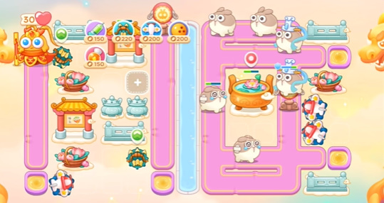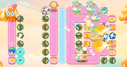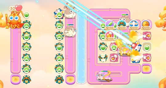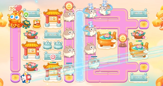 6、最后的阵容大概就是这个样子了,需要注意及时清理道具。多打一点就要适当卡一下炮台留一下兔子。