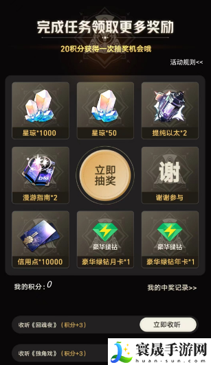 4、我们只需要完成相对应的任务之后,就能获得积分,消耗积分来参与抽奖,说不定还能抽取到你喜欢的大奖。
